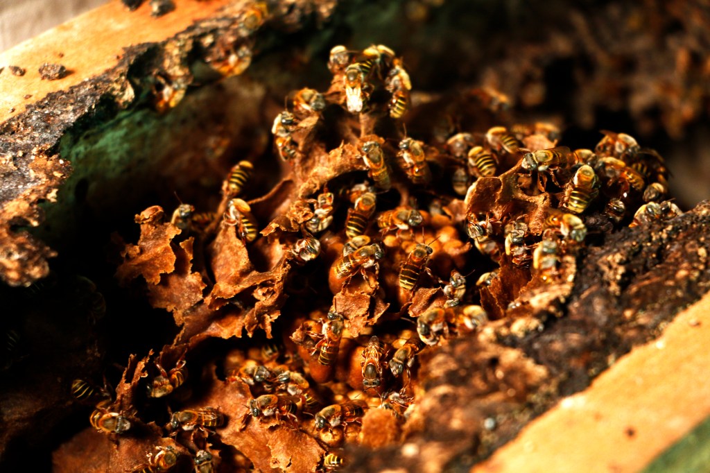 In Ăşuchben-kaab, we work to rescue and conserve the melipona bee for its cultural and ecological value because, in addition to honey, these stingless bees contribute to the pollination of endemic and food plants such as coffee, habanero peppers, and a variety of grains, seeds, and fruits.